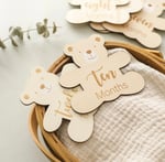 Wooden Bear Baby Milestone Cards 7pc/set Front & Back